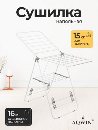 Сушилка для белья напольная, полотно 16 м, 2 уровня, 146х60х95 см, складная, с пластиковыми вставками, бело-серая, Aqwin, Бабочка, VPF04