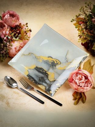 Стильная квадратная тарелка Daniks Флюид 23х23 см: современный дизайн «под мрамор» для эффектной сервировки дома и на даче Почему выбирают: Уникальный мраморный рисунок: акцент в сервировке, гармония с любым интерьером Оптимальный размер 23х23 см: удобно для обеда, закусок и сервировки, прочное стекло Многофункциональность: подходит для дома, дачи, оригинального подарка Тарелка обеденная Daniks Флюид выполнена из прочного стекла с модным абстрактным рисунком под мрамор. Квадратная форма 23х23 см делает ее универсальной: она идеально подойдет для сервировки основных блюд, закусок, подачи десертов. Если вы ищете, какую тарелку выбрать для современного стола или как обновить сервировку без лишних затрат, обратите внимание на этот вариант — он сочетается с разной посудой и легко впишется в интерьер кухни или дачи. В отличие от классических круглых тарелок, квадратная Daniks Флюид экономит место на столе и выглядит особенно стильно. Стекло не впитывает запахи, устойчиво к царапинам, не теряет вид при частом использовании. Многие покупатели спрашивают, подходит ли эта тарелка для посудомоечной машины или СВЧ — данная модель рассчитана только на ручную мойку, зато рисунок сохраняет яркость, а стекло не мутнеет со временем. Если сравнивать с аналогами, Daniks Флюид выигрывает по дизайну и долговечности при доступной цене. Планируете купить недорого тарелку для дачи или сделать подарок? Данную модель легко комбинировать с другой посудой, использовать для будней и праздников. Закажите сейчас — и обновите сервировку быстро, выгодно и со вкусом. Частые вопросы: Какой размер у тарелки Daniks Флюид и подойдет ли она для обеда? Размер 23х23 см — оптимален для основных блюд, закусок, сервировки на одного человека. Форма квадратная, материал — стекло, без крышки. Можно ли мыть тарелку в посудомоечной машине или использовать в микроволновке? Нет, данная модель предназначена только для ручной мойки, не подходит для СВЧ. Это обеспечивает сохранение рисунка и долговечность стекла. Чем отличается эта тарелка от классических моделей? Daniks Флюид — квадратная, с абстрактным рисунком «под мрамор», что делает ее стильной альтернативой классическим круглым тарелкам и выгодным выбором для сервировки.