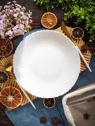 Тарелка обеденная Luminarc Cadix 25 см — стильное решение для сервировки, устойчива к сколам, подходит для СВЧ и посудомоечной машины. Французское качество по доступной цене. Почему выбирают: Стеклокерамика Luminarc — устойчива к царапинам и перепадам температуры, подходит для ежедневного использования Универсальный диаметр 25 см — оптимально для вторых блюд, салатов, подачи закусок и сервировки на праздничный стол Белоснежный дизайн без рисунка — гармонично впишется в любой интерьер, идеальна для дома, дачи или подарка Обеденная тарелка Luminarc Cadix диаметром 25 см — выбор тех, кто ищет практичную и долговечную посуду для сервировки стола. Стеклокерамика, используемая в этой модели, отличается высокой прочностью, устойчива к царапинам и не впитывает запахи, что особенно важно для ежедневного использования. Благодаря закаленному стеклу, тарелка не боится перепадов температур и подходит для разогрева в микроволновой печи. Это отличный вариант для тех, кто ищет, какую тарелку выбрать для дома или дачи — изделие выдерживает интенсивную эксплуатацию и легко моется в посудомоечной машине. В отличие от стандартных керамических или пластиковых аналогов, стеклокерамика Luminarc более долговечна, не желтеет со временем и сохраняет первоначальный вид даже после множества циклов мытья. Если вы спрашиваете, как использовать такую тарелку, она подходит не только для основных блюд, но и для подачи закусок, сервировки праздничного стола или как универсальная подстановочная тарелка. Белый цвет без рисунка делает её универсальной для любого стиля кухни и позволяет выгодно подчеркнуть цвет и оформление блюд. Оформите заказ на тарелку Luminarc Cadix прямо сейчас — получите оригинальную французскую посуду с официальной гарантией и быстрой доставкой. Идеальный баланс цены, качества и стиля для вашего стола. Частые вопросы: Можно ли использовать тарелку Luminarc Cadix в микроволновке? Да, тарелка выполнена из закалённого стекла и стеклокерамики, полностью безопасна для использования в СВЧ и посудомоечной машине. Подходит ли эта тарелка для сервировки праздничного стола? Да, благодаря универсальному дизайну и белоснежному цвету, тарелка отлично смотрится на праздничной сервировке, подходит для подачи основных блюд, закусок и десертов. Какой диаметр у тарелки Luminarc Cadix H4132? Диаметр тарелки составляет 25 см, что оптимально для обеденных и сервировочных задач.