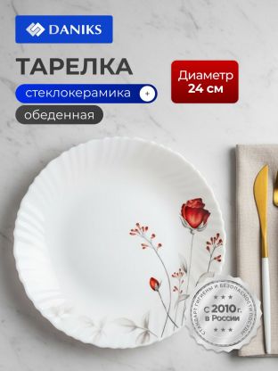 Тарелка обеденная, стеклокерамика, 24 см, круглая, Вероника, Daniks, LHP95/220303