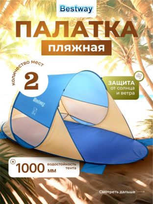 Палатка пляжная 2-местная, 200х120х90 см, 1 слой, 1 комн, Bestway, Beach Quick 2, 68107