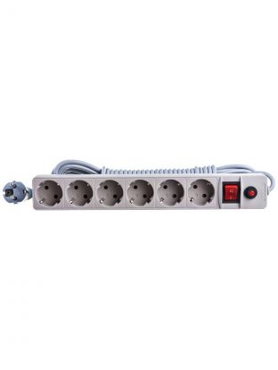 Сетевой фильтр 6 гнезд, 10 м, ПВС, 3х0.75 мм2, с заземлением, 10 А, серый, UNIVersal, 967U-5010