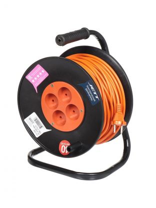 Удлинитель на катушке, 4 гнезда, 40 м, ПВС, 2х0.75 мм2, без заземления, пластик, Jett, 153-340