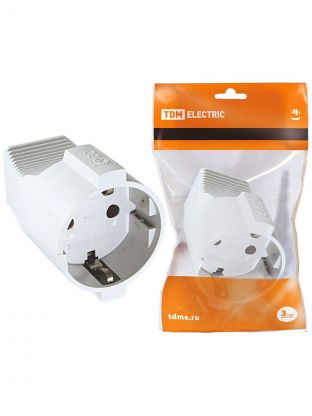 Кабельная розетка 2 полюса, с заземлением, 16 А, с защитными шторками, белая, TDM Electric, SQ1806-0031