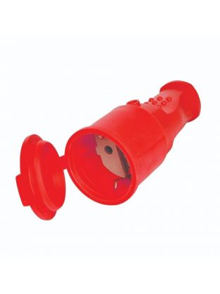 Разъем штепсельный с заземлением, 16 А, IP44, красный, с заглушкой, каучук, UNIVersal, 3078
