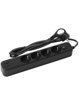 Сетевой фильтр 4 гнезда, 1.5 м, 3х0.75 мм2, с заземлением, 10 А, черный, Эра, USF-4es-1,5m-2xUSBAC-B, Б0059572