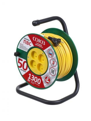 Удлинитель на катушке, 4 гнезда, 50 м, ПВС, 2х0.75 мм2, без заземления, пластик, Союз, 481S-3105