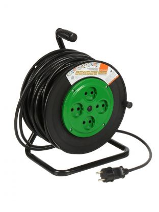 Компактная конструкция и эргономичная ручка делают перемещение удлинителя по участку максимально комфортным. Катушка выполнена из прочного пластика, что гарантирует долговечность и устойчивость к механическим воздействиям. Четыре розетки позволяют одновременно подключать несколько приборов, что особенно удобно при работе с электроинструментом или садовой техникой. Удлинитель не имеет заземления, что подходит для использования с устройствами, не требующими дополнительной защиты.
