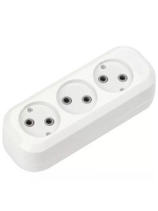 Колодка розеточная 3 гнезда, 3 полюса, без заземления, 10 А, 2.2 кВт, белый, Smartbuy, SBE-10-3-00-N