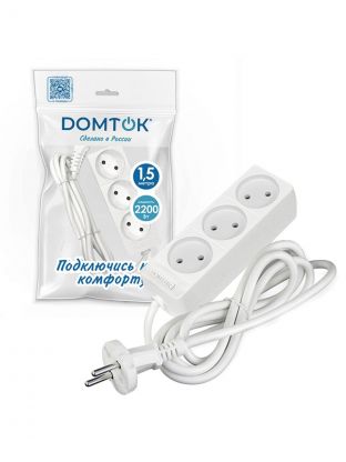 Удлинитель бытовой Domtok 2370 на 3 гнезда и 1.5 м — компактное решение для дома и дачи. Безопасность, надёжность, экономия пространства.