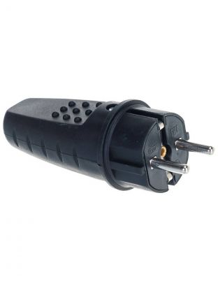 Вилка прямая, с заземлением, 16 А, IP44, 250 В, однофазная,каучук, черная, UNIVersal, 602227