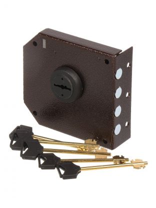 Замок накладной дверной, Эльбор, ReX 2.14, 5306, сувальдный, 5 ключей, универсальный, антик медь