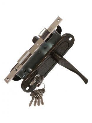 Замок врезной с ручками. Предназначен для установки в деревянные двери толщиной до 40 мм, правого и левого открывания. Межосевое расстояние - 70 мм. Удаление ключевого отверстия - 40 мм. Материал ручек - алюминий. Гальваническое покрытие. Комплектация: цилиндровый механизм 60 мм, ключ-ключ, 5 ключей, ответная планка, винтовые стяжки. Материал: ручка - алюминий, планка и замок - сталь, цилиндр - сплав ЦАМ.