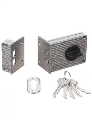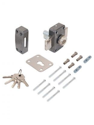 Назначение: деревянные двери. Тип механизма секрета: цилиндровый совместный с корпусом. Тип цилиндрового механизма: английский. Материал цилиндра: алюминиевый сплав. Количество ключей: 5. Тип ригеля: прямоугольный. Материал корпуса: сталь. Покрытие корпуса: полимерная краска. Цвет: серый.