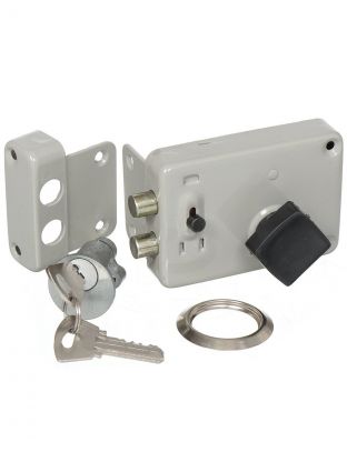 Замок накладной цилиндровый с защелкой и вертушкой. Предназначен для установки на деревянные двери. Один засов прямоугольного сечения размера 27*12 мм , с максимальным вылетом 25 мм. Удаление ключевого отверстия - 60мм. Габариты замка - 95х95х53 мм. Механизм замка под англ. ключ, идет совместно с корпусом. Закрывание и открывание замка изнутри производится вертушкой, снаружи ключом. Защелка изнутри открывается ручкой защелки, снаружи - ключом. Характеристики: Удаление ключевого отверстия: 60мм; Сторона двери: левая, правая. Габариты замка: 95х95х53 мм; Цвет: серебристый.