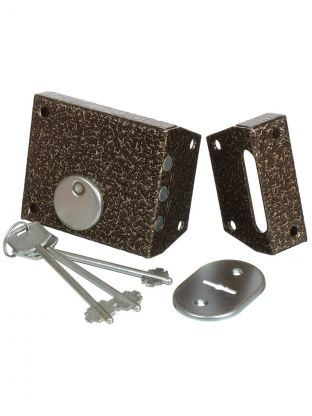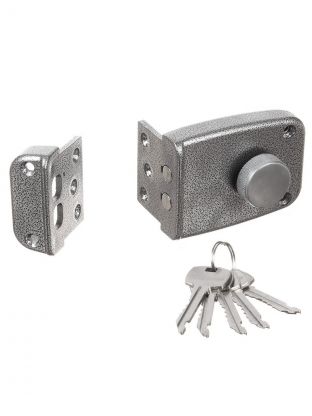 Не всегда внутреннее устройство двери позволяет использовать врезные запорные механизмы. В этом случае выходом из положения является монтаж накладного замка. Он устанавливается на поверхность полотна, не нарушая его целостность. Замок накладной, предназначен для установки в деревянные и стальные двери правого и левого открывания толщиной до 45мм. Окрашен полимерными красками: медь, бронза, серебро и металлизированными покрытиями: голд, хром. Засов из двух стальных ригелей диаметром 14мм. Закрывание и открывание изнутри производится вертушкой, снаружи ключом. Имеется блокировка от открывания ключом снаружи, путем доворота вертушки в крайнее положение при открытом ригеле. Механизм секрета цилиндрический односторонний с английским ключом. Укомплектован 4-мя ключами, запорной коробкой и ключевиной из полированной нержавеющей стали. Преимущества накладных замков: Простой монтаж, не требующий от человека каких-либо специальных знаний и навыков. Отпадает необходимость вызывать слесаря и оплачивать его услуги. Для установки не нужно разбирать дверь и менять ее внутренний каркас. Это положительно сказывается на сохранении заводских защитных функций. Ремонт изделия выполнить намного проще, так как весь его механизм расположен с внутренней стороны. От потенциального взломщика замок отделяет полная толщина двери, поэтому как-то высверлить или вскрыть его не получится. В любом случае, бесшумно пробраться внутрь никак не выйдет. Дополнительная информация: Расстояние между креплениями на торце двери: 48 мм. Расстояние между креплениями на лицевой стороне: 50 мм.