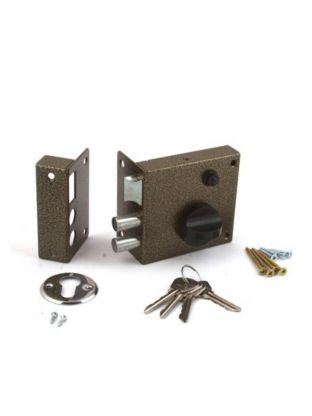 Замок накладной цилиндровый ЗН-1 2Р с пластинчатым цилиндровым механизмом секрета. Предназначен для установки в деревянные и стальные двери правого и левого открывания толщиной до 45 мм. Окрашен полимерной краской. Засов из двух стальных ригелей диаметром 14 мм. Закрывание и открывание изнутри производится вертушкой, снаружи ключом. Имеется блокировка от открывания ключом снаружи, путем доворота вертушки в крайнее положение при открытом ригеле. Механизм секрета цилиндрический односторонний с английским ключом. Комплектуется 4-мя ключами, запорной коробкой и накладкой. Цвет: медь. Размеры замка: 100х67х55 мм. Дополнительная информация: Материал ключей: полированная нержавеющая сталь.