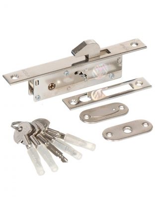 Замок врезной с цилиндром под крестообразный ключ. Надежная система обеспечивает высокую степень защиты. Материал замка и ключей — сталь, которая защищает механизм при неблагоприятных условиях эксплуатации, увеличивая срок службы. Комплектация: 5 ключей в комплекте; Без защелки и ручек; Характеристики: Межосевое расстояние: 45 мм; Прямой ригель; Цвет планки: хром; Габариты: планка 20х195 мм; Корпус ширина: 75 мм, высота: 48 мм;