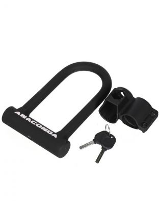 Замок велосипедный дуговой, Авангард, Anaconda Т608, 14 мм, сталь, с креплением на раму, силикон, всепогодный, черный, 14 853