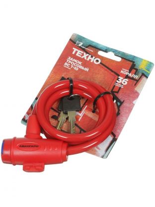 Замок велосипедный тросовый, Авангард, Техно, 1000 мм, ВС-Т10, коралловый, 7 325