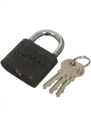 Универсальный навесной замок подойдет для запирания бытовых помещений, ящика или багажа. Оптимальный выбор по цене и качеству. Характеристика: Тип замка: навесной; Тип механизма секретности: цилиндровый; Количество ключей: 3 шт.; Тип корпуса: открытый; Материал корпуса: чугун; Длина замка: 93 мм; Ширина замка: 60 мм; Форма дужки: полукруглая; Материал дужки: закаленная сталь; Диаметр дужки: 10 мм; Внутренняя высота дужки (в закрытом состоянии): 33 мм; Внешняя ширина скобы: 41 мм. Преимущества: Навесной замок является очень простым и доступным решением, чтобы запереть любую дверь, так как их легко установить и они относительно недорогие; Имеет крепкий корпус из чугуна и дужку из закаленной стали; Замок запирается автоматически, нажатием на дужку замка.