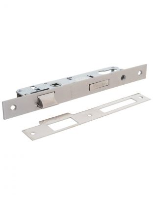 Врезной замок Apecs - полноразмерная защёлка для деревянных межкомнатных дверей с бесшумным пластиковым язычком. Превосходное качество покрытия, точность изготовления деталей, точность сборки, и современная конструкция замка дают высочайшие показатели работоспособности, превышающие самые высокие требования ГОСТ. В комплект необходимо будет подобрать цилиндровый механизм, длина которого будет зависеть от толщины двери. Характеристики: Межосевое расстояние: 85 мм; Количество ригелей: 1 шт.; Тип механизма защелки: классический; Дополнительная фиксация: да; Тип фиксации: ключом; Удаление квадрата под ручку: 50 мм; Длина: 73 мм; Ширина: 14 мм; Высота: 196 мм; Удаление ключевого отверстия (Backset): 50 мм; Вылет ригеля: 12 мм. Преимущества: Форма языка защёлки, скруглённой в двух плоскостях, обеспечивает максимальный комфорт в эксплуатации; Корпус универсальный: подходит и на правые, и на левые двери, защелка легко переставляется без использования дополнительного инструмента; Форма лицевой и ответной планок и качества крепежа в комплекте даёт возможность установить защелку быстро с помощью электроинструмента; Ответная планка с дополнительным элементом загиба убережёт наличники при соприкосновении с языком защелки закрывающейся двери от порчи и сохранит эстетичный внешний вид; Отверстие под квадрат ручки распространённого стандарта 8*8 мм для возможности укомплектовать защелку в любом стиле любого современного интерьера.