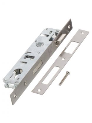 С появлением пластиковых дверей в обиходе появилась необходимость в компактном и тонком замке – таким замком стал узкопрофильный замок. Врезной замок в дверь легко устанавливается, стандартное отверстие под квадрат 8х8 мм позволяет комплектовать дверной замок под цилиндр с любой раздельной ручкой на розетке. ВНИМАНИЕ: цилиндр в комплект не входит и приобретается отдельно. Характеристики: Предназначен для установки в узкопрофильные двери и калитки. Торцевая планка из нержавеющей стали SS201. Ответная планка: в комплекте. Цвет: хром. Класс секретности: 2 класс. Тип механизма секретности: без цилиндрового механизма. Межосевое расстояние: 85 мм. Удаление ключевого отверстия (Backset): 25 мм. Количество ригелей: 1. Форма ригелей: прямоугольный. Размер ригеля: 8х35 мм. Преимущества: Дверной замок универсален - язычок защелки легко переставляется на правосторонние и левосторонние двери. Подходит для любых металлических, алюминиевых и ПВХ-дверей наружного и внутреннего открывания. Дверной замок укомплектован ответной планкой, которая прикроет прорези для ригеля и защелки замка. Узкопрофильный замок является оптимальным выбором для использования на объектах с тонкими дверями, так как он сочетает в себе компактность, удобство использования, надежность, универсальность и экономичность.