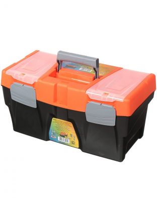 Ящик для инструментов с металлическим замком, рассчитан на повышенные нагрузки. Помогает содержать в порядке и быстро находить необходимые инструменты и принадлежности к ним. Характеристики: Цвет товара: серый, оранжевый; Материал: пластик; Замок: металлический; Габариты: 41,4x21,2x17,5 см. Преимущества: Идеален для использования дома, на даче, в гараже, мастерской, в автомобиле. Хранение инструментов в ящике защищает от пыли и грязи. Наличие ручки позволяет переносить инструменты на место выполнения работ. Съёмный внутренний лоток позволяет отделить инструменты и аксессуары первой необходимости от основного отсека. Крышка ящика оснащена органайзерами для хранения мелочей. Возможность использования навесного замка защитит содержимое от свободного доступа, в том числе обеспечит безопасность детей.