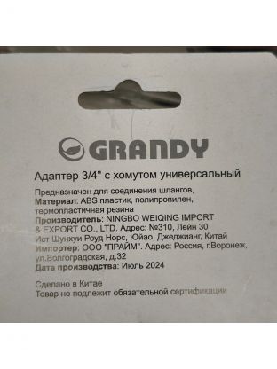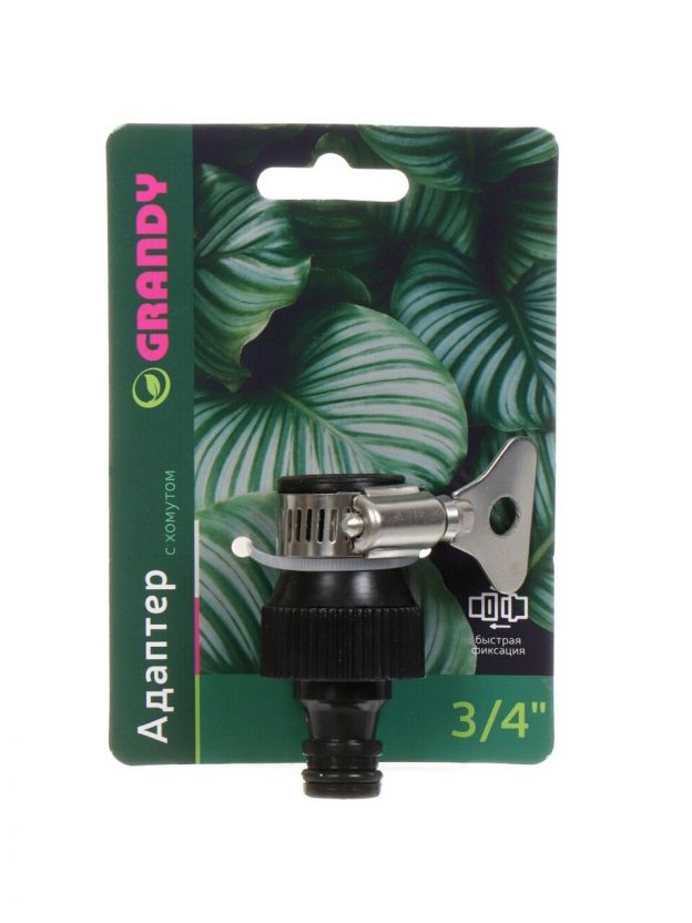 Адаптер 3/4", быстросъемный, с хомутом на кран без резьбы, Grandy, JS-3018