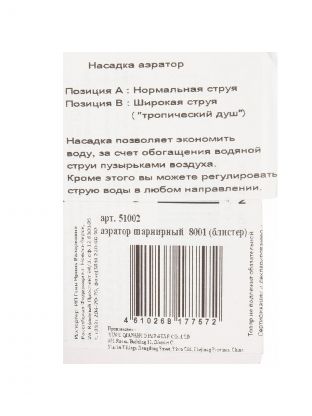 Аэратор для смесителя, 2 режима, шарнирный, индивидуальная упаковка, ComfortFactor, 51002