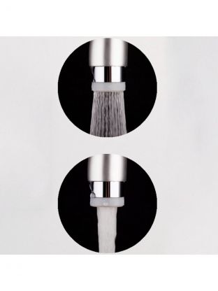 Аэратор для смесителя - это небольшое приспособление, закрепляемое на "носике" крана и служащее для ограничения потока воды без сколько-либо заметного снижения интенсивности струи. Вода, проходя через несколько сеток устройства, смешивается с воздухом - на выходе получается визуально мягкая струя. Благодаря тому, что подмешивание воздуха в аэраторе происходит постоянно, давление в смесителе кажется неизменным, несмотря на то, что расход воды уменьшается.