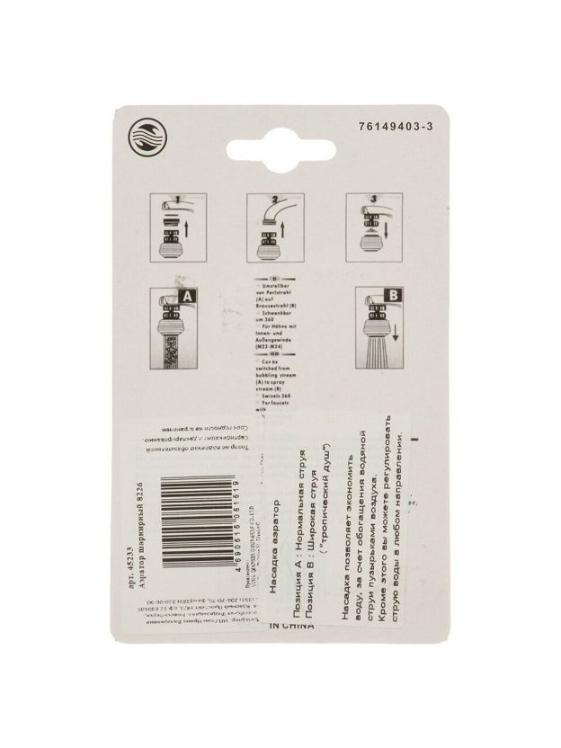 Аэратор для смесителя, шар, индивидуальная упаковка, ComfortFactor, 8 226, 45233