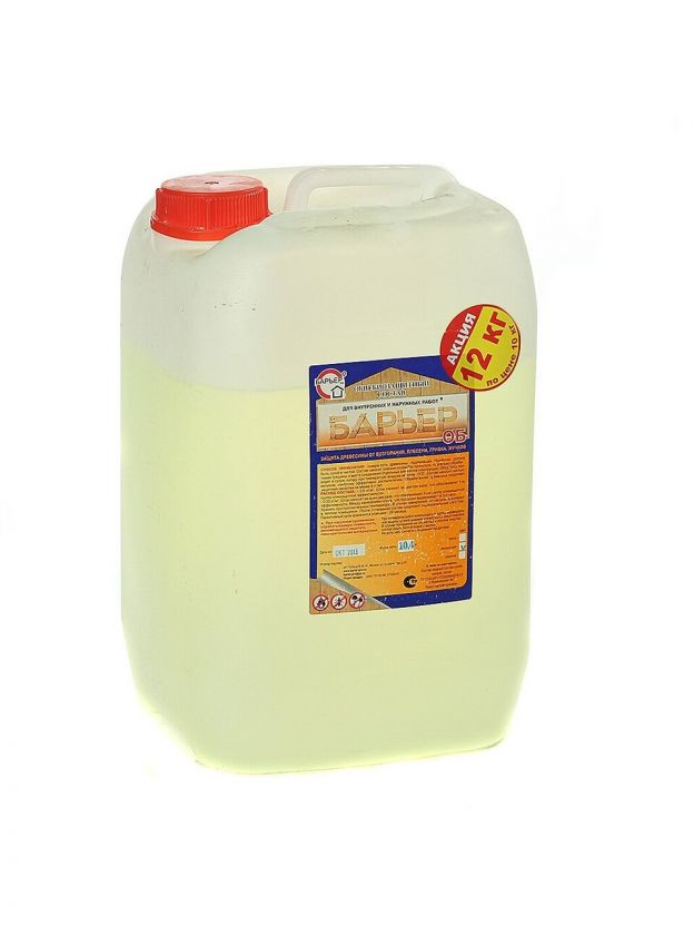 Антисептик Барьер, ОгнеБио, для дерева, 1 группа, бесцветный, 12 кг