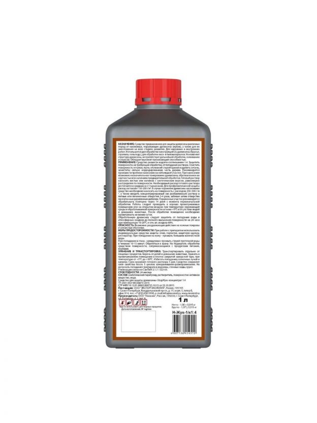 Рекомендуется произвести пробное нанесение на небольшой участок. При нанесении возможно незначительное тонирование древесины, обусловленное ее сортностью или наличием предварительной обработки. Готовый раствор наносить кистью или валиком с синтетическим ворсом, равномерно распределяя по поверхности. Необходимый расход готового раствора достигается в среднем за 2-3 нанесения. Для профилактической защиты расход составляет 150-200 г/м2. В случае поражения древесины насекомыми препарат необходимо наносить на поверхность с расходом 250-300 г/м2, а также вводить концентрированный (не разбавленный) раствор в летные или личиночные отверстия 3-4 раза, забивая затем отверстие пропитанным деревянным дюбелем. Пораженные участки рекомендуется обрабатывать повторно через 14 дней с момента первоначальной обработки. Работы следует проводить в хорошо проветриваемых помещениях или на открытом воздухе при температуре окружающей среды и обрабатываемой поверхности не ниже +5°С в отсутствии людей и домашних животных. После обработки помещение необходимо проветривать не менее суток. Обработанную древесину следует защитить от попадания воды и атмосферных осадков до полного высыхания поверхности.