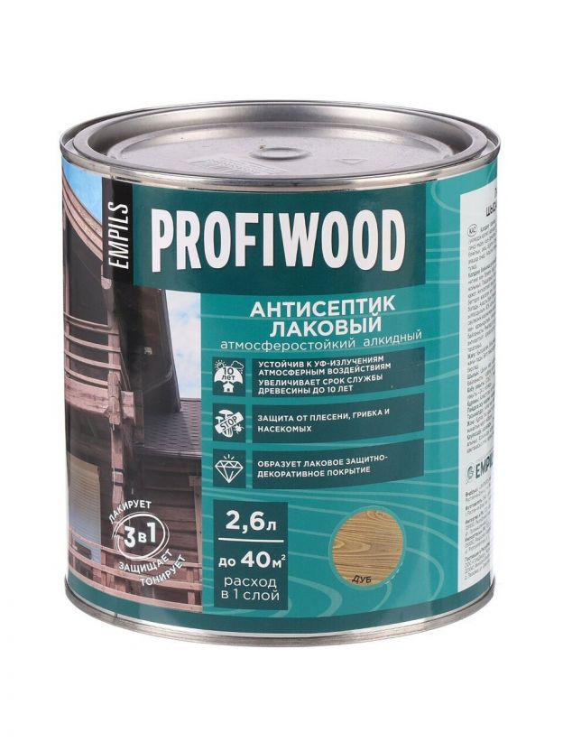 Антисептик Profiwood, для дерева, лаковый, дуб, 2.4 кг