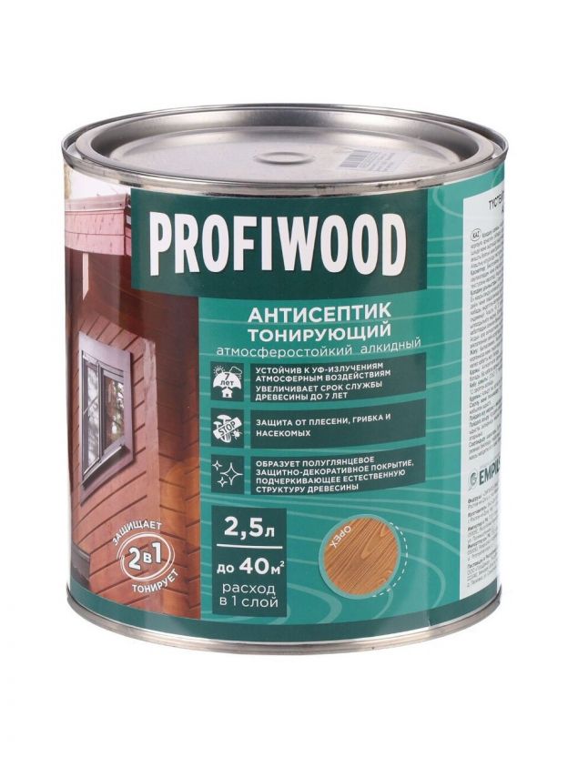 Алкидный деревозащитный антисептический состав Profiwood «2 в 1» обеспечивает долгосрочную защиту древесины от воздействия атмосферных явлений и биологических факторов, а также служит для декоративного оформления.