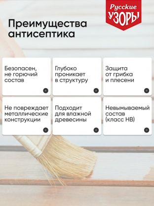 - Класс защиты древесины - НВ (невымываемый) и является средством с низкой коррозионной агрессивностью по отношению к черным металлам.