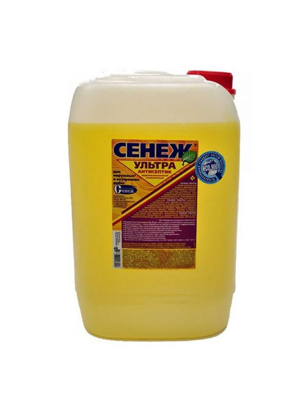 Антисептик "СЕНЕЖ УЛЬТРА" предназначен для защиты древесины от гниения, плесени, синевы и насекомых-древоточцев внутри помещений и на открытом воздухе при непосредственном воздействии атмосферных осадков, почвенной влаги, гигроскопическом и конденсационном увлажнении, контакте с грунтом самостоятельно или в качестве биозащитной грунтовки под ЛКМ.