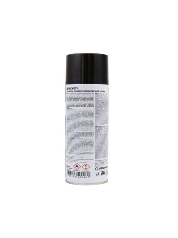 При необходимости повторить обработку. Для удаления тонировочной пленки: Во избежание попадания следов аэрозоля необходимо защитить поверхности, не подлежащие обработке. Не допускать длительный контакт с пластиковыми деталями автомобиля. Равномерно прогреть стекло, подлежащее растонированию. Аккуратно поддеть край пленки и медленно, без рывков, снять пленку со всей площади стекла. Дать стеклу остыть и равномерно распылить состав на стекло, дать подействовать в течение 30-40 секунд. Удалить средство с помощью резинового скребка или сухой салфетки.