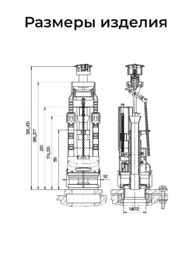 • Средний расход воды, подаваемой из бачка на смыв через арматуру спускную 1,8+-0,2л./с.
