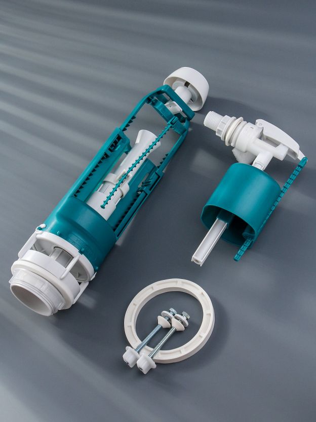 Комплект арматуры для бачка к унитазу.