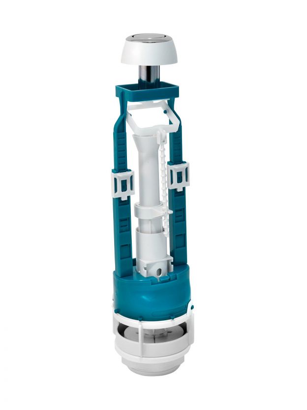Универсальный сливной клапан СБкпм кнопочный с одним режимом слива (для слива необходимо нажать на кнопку смыва). Предназначен для использования в смывных бачках высотой от 290 до 405 мм и с диаметром отверстия в крышке бачка 40 или 26мм. Установка клапана в бачках с разными отверстиями в крышке возможна благодаря дополнительному переходному кольцу "кпм", которое расположено под кнопкой и входит в комплект сливного клапана СБкпм.