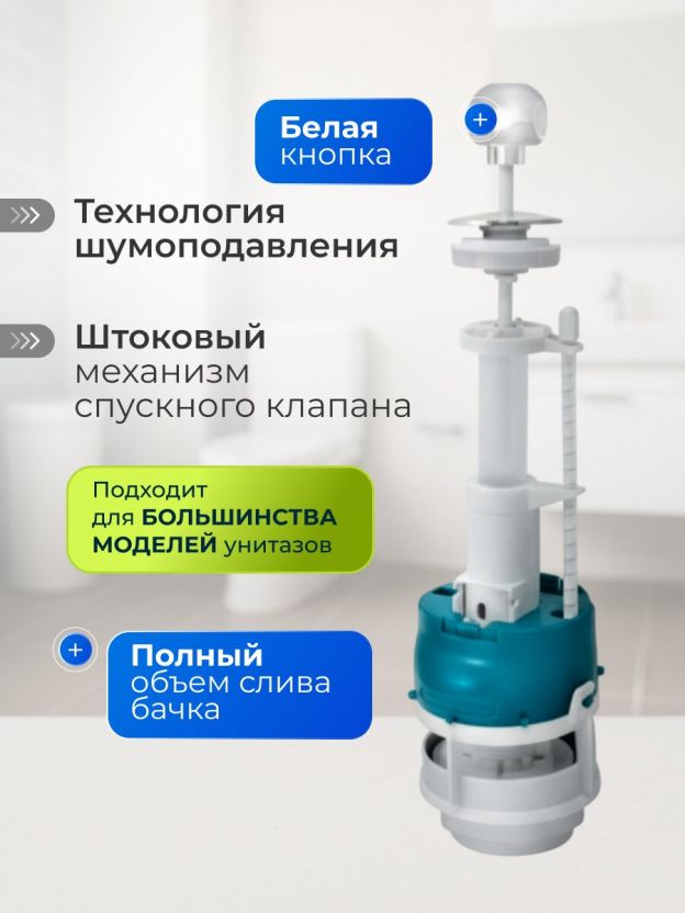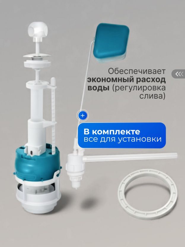 Комплект арматуры для бачка к унитазу. Сливной клапан СБа штоковый (для слива необходимо поднять ручку вверх и отпустить).