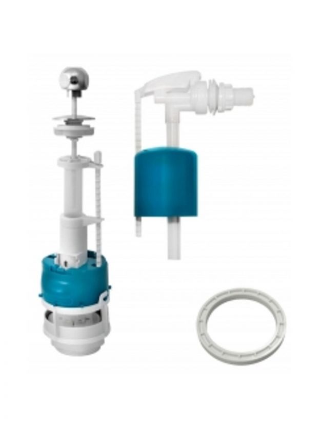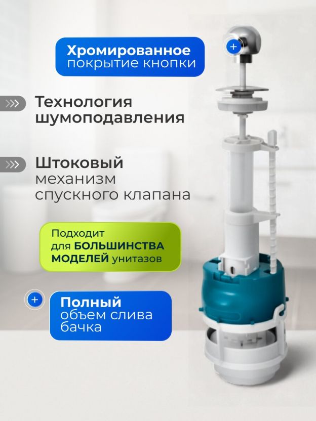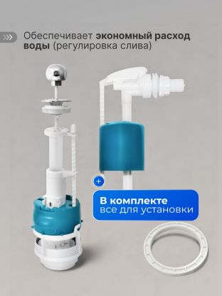 Комплект арматуры для бачка к унитазу. Сливной клапан СБа штоковый (для слива необходимо поднять ручку вверх и отпустить).