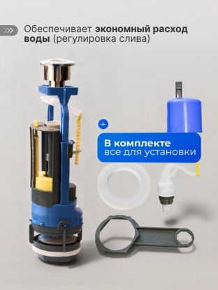В комплекте прилагается крепление для бачка и ключ для затягивания гаек спускного и наполнительного клапана.
