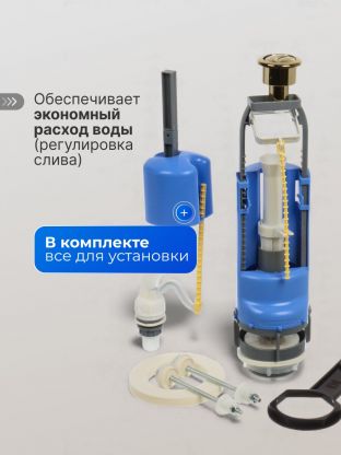 В комплекте прилагается крепление для бачка и ключ для затягивания гаек спускного и наполнительного клапана.