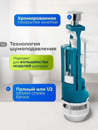 Арматура для бачка унитаза нижняя, 1/2", двухрежимная, кнопочная, хром, Инкоэр, СБ2-НпрНРФ-АА-В Р