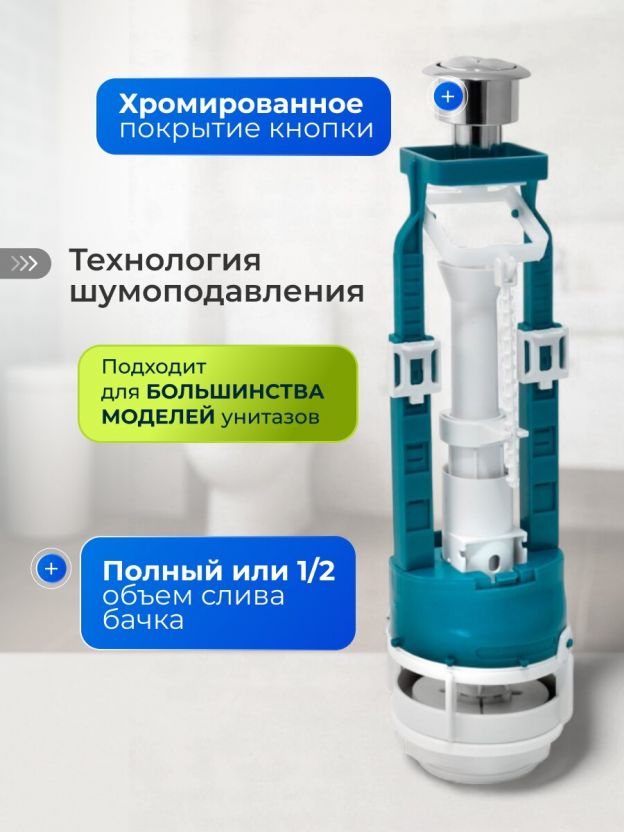 Арматура для бачка унитаза нижняя, 1/2", двухрежимная, кнопочная, хром, Инкоэр, СБ2м-НпрНРФ-АА-В Р