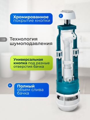 Арматура для бачка унитаза нижняя, 1/2", однорежимная, кнопочная, хром, Инкоэр, СБкпм-НпрНРФ-А-В Р
