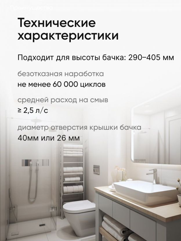 - Наличие обратного клапана в арматуре «НпрН» предотвращает попадание воды из смывного бачка при отключении системы холодного водоснабжения;